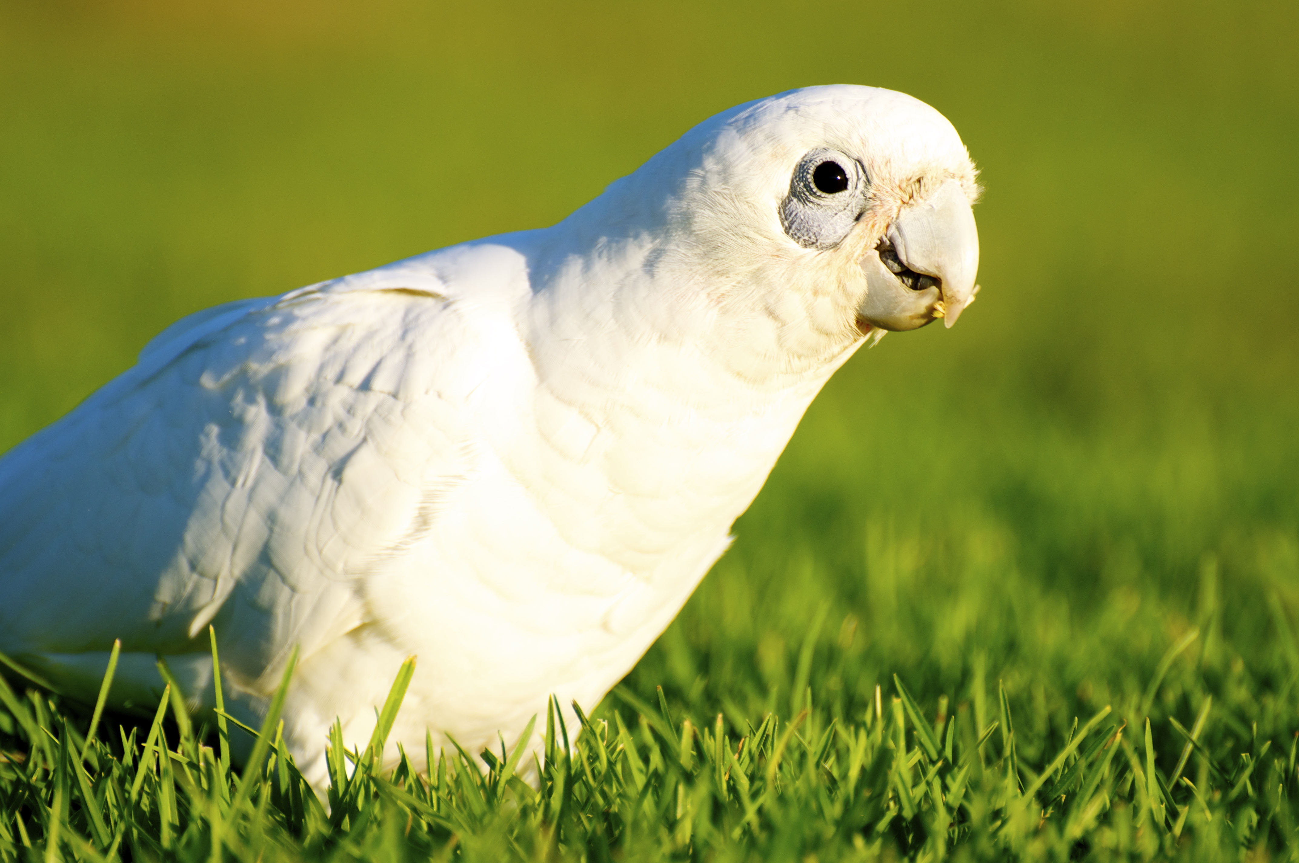 Centennial Park in the suburb of Paddington, just a 45 minute walk or a short bus ride from the Central Business District is permanent home to 4 species of cockatoo as well as many other species of bird. It is here, by the duck ponds that the next 2 species of cockatoo swooped and landed together, one evening in a flapping, tumbling, squawking mixed flock. The noisy Little corella made up about ninety percent of the flock. These small white cockatoos spend their time feeding on the ground, search for seeds or the occasional invertebrate.