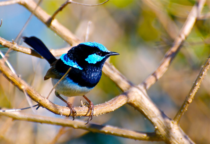 The Superb fairywren (yes that is it’s name) is common across the South Eastern states of Australia and can be seen frequently in suburbia as electric blue flashes through the undergrowth. It is one of fourteen species of Fairywren spread across Australia and Papua New Guinea. They are not related to the wrens of the Northern hemisphere.
