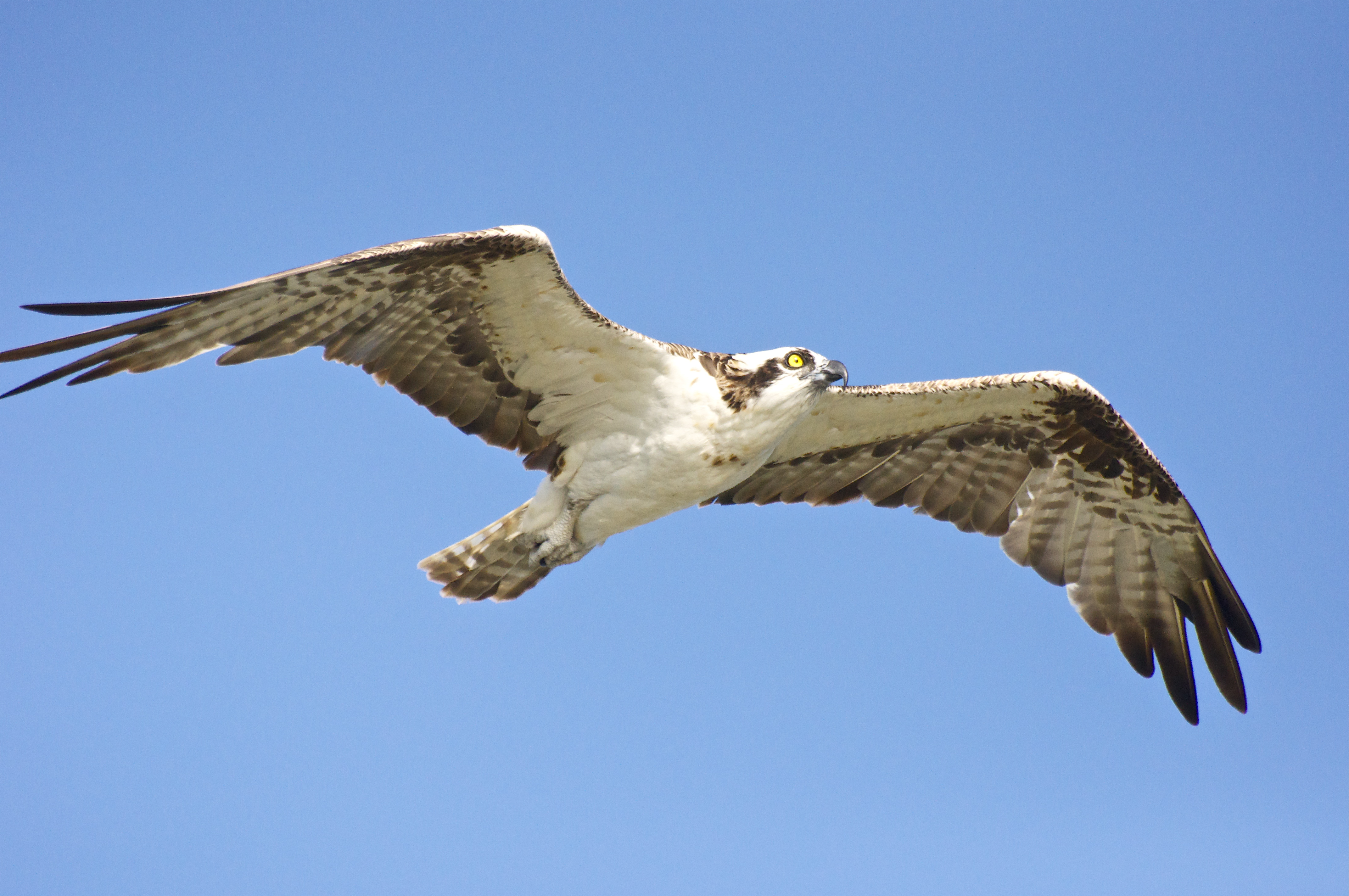 Look for osprey around any large body of water that has a good head of fish, close to the surface. I found them to be extremely common in Florida, but have also seen them in numbers in New Jersey and driving between New York and Connecticut, where they often fly over the road with a fish dangling from needle sharp claws. It is always a privilege to see such magnificent raptors.