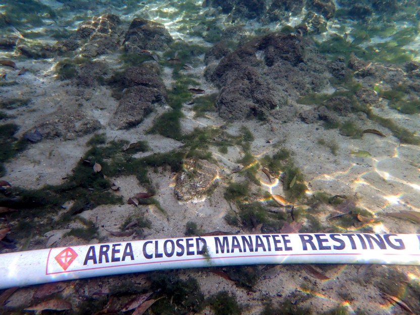 Our second stop was at Kings Springs, which includes Tarpon Hole, Little Hidden Springs and Mullet Gullet. These springs bubble up in deeper water in the bay and are only accessible by boat. When we arrived the other boats in the area were leaving, so we slipped into the water and swam towards the springs, being careful not to cross into the Protection Zones where manatees can rest undisturbed.