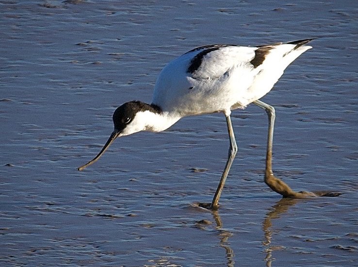 Back in the bird hide at the Thameside Nature Park, a small group of Avocets walked close to the shoreline. The low winter sun gave just enough light for me to get some detailed shots of these beautiful birds – the blue legs could just be made out above their muddy boots, and the long curved beak that gives the bird its scientific name Recurvirostra avosetta, the word recurvirostra meaning “curved backwards bill”.