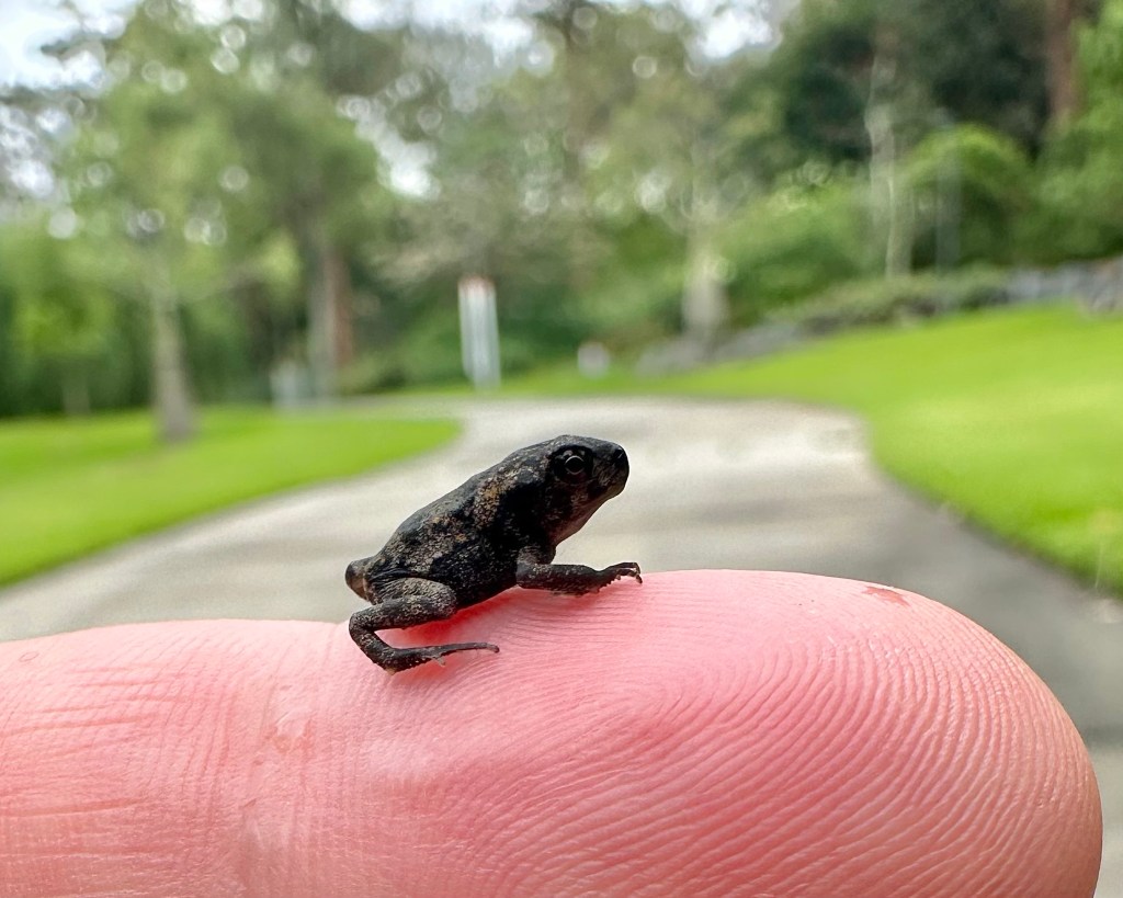 The largest toad on the planet also comes in small size. The following morning, I arrived early at Mount Coot-tha Botanic Gardens. Clouds hung heavily overhead, and the air was thick with cool mizzle. I walked towards the first lake when something caught my eye. It was a tiny toadlet. A few paces later, and toadlets were scattering in all directions at every fall of my boot.